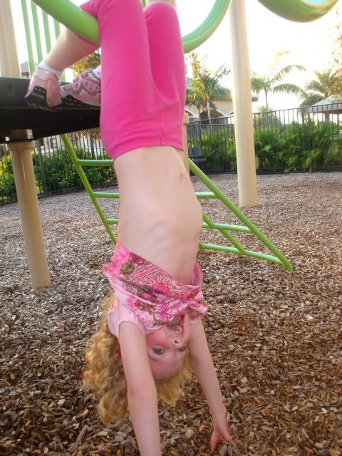 I love watching her climb and hang off the bars. I loved to do that when I was a kid.